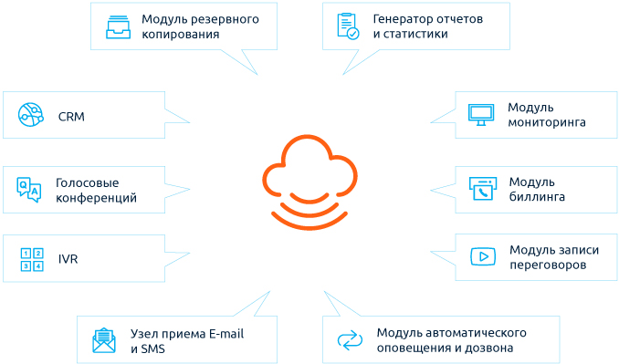 - Создание любых сценариев обработки вызовов с возможностью оперативного внесения изменений.